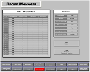 - PLC programming for control of cast speed, mold water flow rate, and grain refiner speed for the casting process based on multiple “recipe” databases.